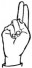 На ћирилици написано ЈАБУКА РАНЂЕЛОВИЋ састоји се из 16 слова [?]. Исписано ћириличном једноручном азбуком за глувонеме: